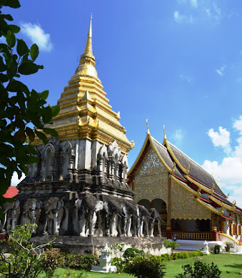 It turns out that Chiang Mai is a pretty westernized city with 7-Elevens, Pizza Huts, Subways, etc. Still plenty of Buddhas to be seen, of course. But the style of the temples is quite different. They are often quite ornate with lots of mirrored and colorful tile mosaics and they are clearly quite fond of elephants and serpents (of both the one headed and five headed varieties).